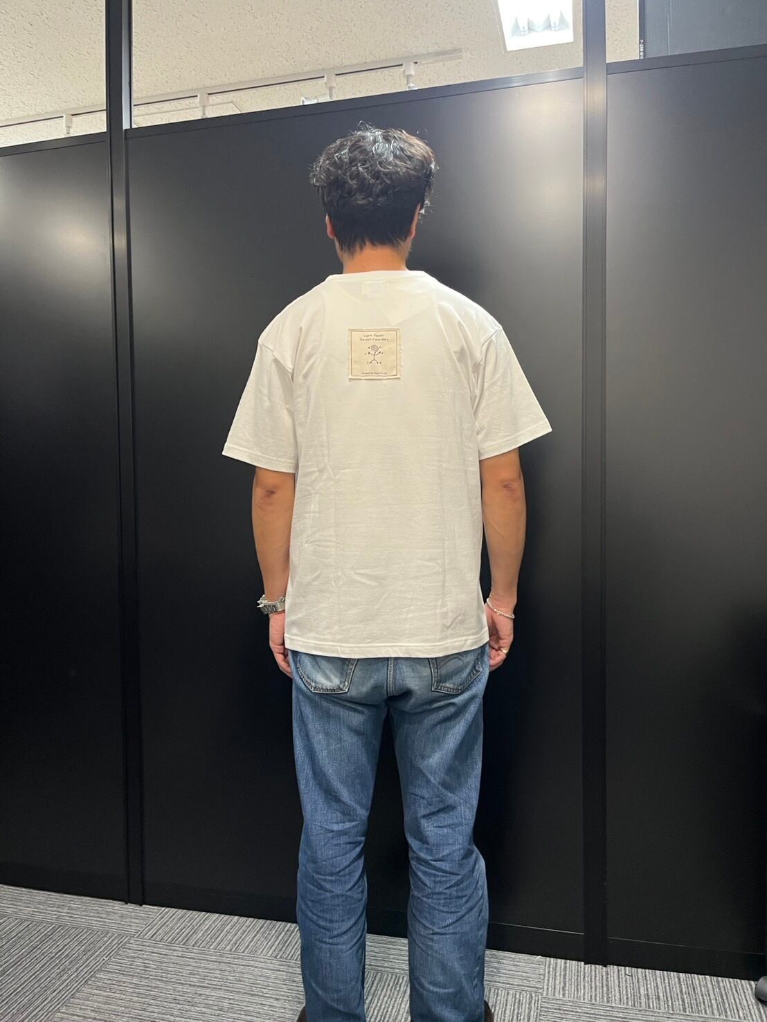 背面にはいつもの別布タグ。洗濯するたびにフリンジ加工が進行し、